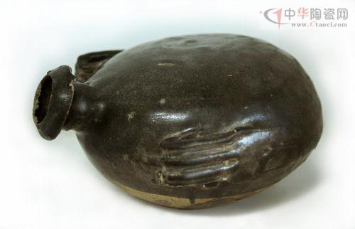 图3 西夏黑褐釉双系扁壶 长18.5厘米 推测为伊克昭盟窑产品 北京民间藏