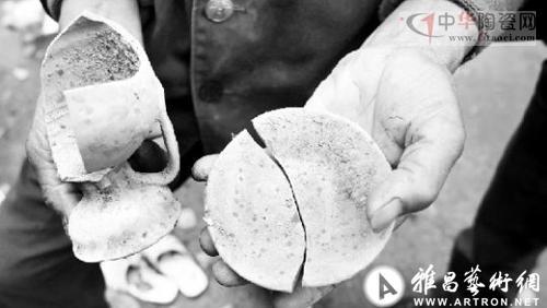江夏区湖泗镇浮山村,村民在田间耕作时刨出的杯盘。