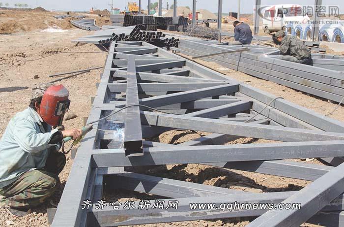 总投资5亿元的朗盛陶瓷企业在焊接厂房钢梁