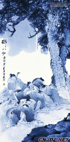 黄景藏虽有得天独厚的家学养成,但他不满足于自己的现状,他先后在景德镇陶瓷职工大学、江西师范大学进修学习,在掌握传统工艺的基础上,他的艺术视野和思想观念得到了进一步提升。他的大胆突破和他的屡败屡战的坚持,终于迎来了他艺术生命中的又一个明媚春天。在一次全国工艺美术百花奖评选活动上,黄景藏的作品青花分水人物《醉八仙》获得金奖,赢得了业界人士的一致肯定。该作品形态布局一气呵成,局部勾勒简约数笔,分水色阶过渡自然,柔和匀净,同一笔中也能分出不同的浓淡笔韵,人物刻画鲜活生动,富有神韵。其温润而虚实相间的青花分水技法,将人物性格特征刻画得惟妙惟肖、入木三分,填补了历来陶瓷青花分水人物的空白,形成自己独特的陶瓷艺术风格。