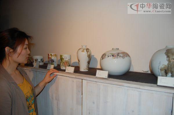 “这些落笔在笔洗、茶具、花器等上的与文玩相关的瓷绘作品,由于载体的转化,一下子拉近了艺术与生活的距离,也抽离了架上艺术的神秘感,从而亲近到可以拿在手中把玩的程度。”一位现场观众如是说道。