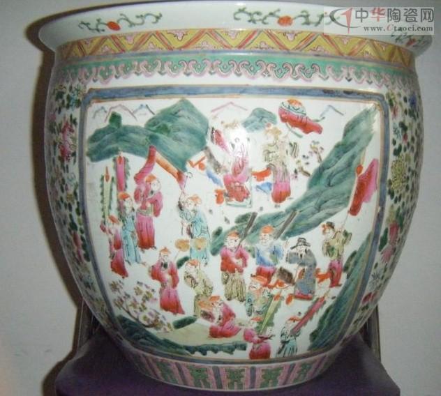 彩绘:咸丰彩绘具有细腻与粗糙两种,精细者多为慈禧等烧制的宫廷之物,这类具有绘画工细、色彩绚丽、纹饰寓意吉祥的特点,但它毕竟是清晚期且是在御窑厂被毁、“良工四散”的情况下,其烧造技术终不能与清盛世媲美。图案除少量精品外,人物形象大多生硬。尤其民窑所画的人物面部鼻骨高直隆起有勾,这也是咸丰粉彩鉴定的一个特点。