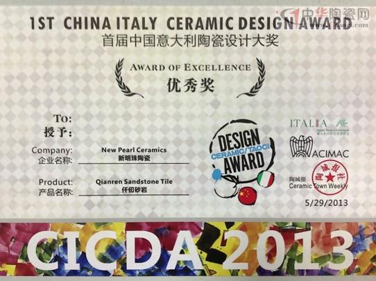 冠珠仿古砖“仟仞砂岩”喜获“首届中国意大利陶瓷设计大奖”