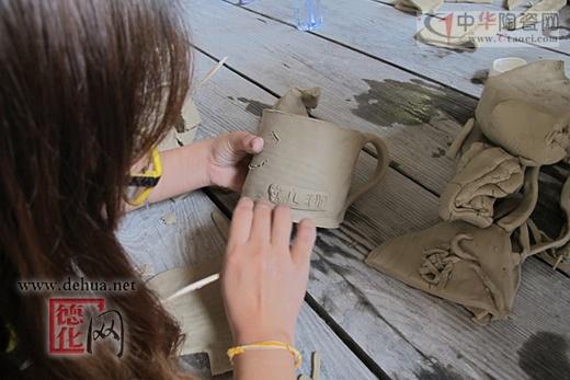 “父亲节快到了,我要把在月记窑做的陶杯寄回缅甸送给爸爸,”来自缅甸曼德勒的年轻姑娘莫君珊一边小心翼翼地在自制的陶杯上刻上“女儿珊”和“爸”两行字,一边笑盈盈地对记者说。