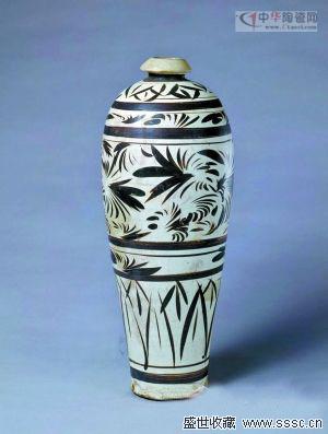 宋花卉纹梅瓶" target="_blank">磁州窑白地黑花花卉纹梅瓶