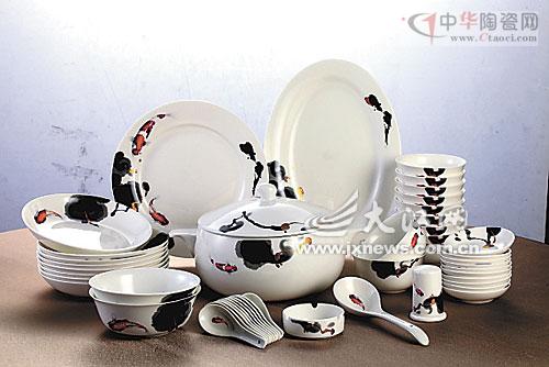 由江南艺术馆独家制作的水墨锦鲤礼品瓷,为56头釉中拍金骨质瓷(10人餐具套组),整套作品制作精美,质量上乘,尤其是画面整体采用中国水墨画风格,一对锦鲤在清水里畅游,几滴墨汁在水中自然晕染、散开,简约随性的线条,悠扬顿挫的墨色。仿佛一幅流动的中国画卷,几缕金色点线更是增添了富贵气息。这种市场上并不多见的水墨礼品瓷将浓郁的艺术气息更加融进我们的点滴生活。此外,江南艺术馆推出的梅兰竹菊四盖碗也颇受买家好评。