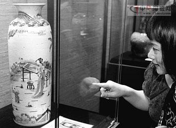 6月8日,观众在敦本博物馆观赏康熙五彩一统瓶藏品。
