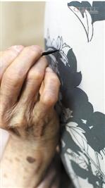 比如一个茶杯,要画300到500个,挑选很严格,一点毛病都不能有,花纹要用放大镜去照,看有没有裂纹和瑕疵。