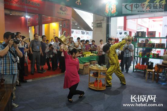 本届展会内容比较丰富,活动较为精彩,其中在开幕当天13号上午的紫砂壶艺术讲座,由宜兴紫砂行业协会秘书长紫砂文化研究会时顺华会长,中国陶瓷艺术大师邱玉林先生主讲,下午由来自云南农业大学教授盛军先生讲关于茶与养生方面的知识讲座,另外特别是吉祥茶业、介福茶业还带来了阵容庞大的表演团队每天表演,为现场助兴。