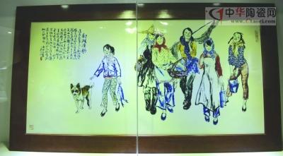 这幅《鄱湖渔歌》是李一新2012年创新之作,采用高温颜色釉装饰工艺,在胚胎上作画后,再上一层釉,在1300度的高温下烧制而成。画面白底釉面上,一群衣着纯朴的渔家姑娘打渔而归,她们迈着轻快的脚步,有的提桶,有的挎篮,脸上挂满笑容,由内而外地散发着幸福的喜悦,旁边一只憨态可掬的小狗也悠闲地迈着步子,同游归来。