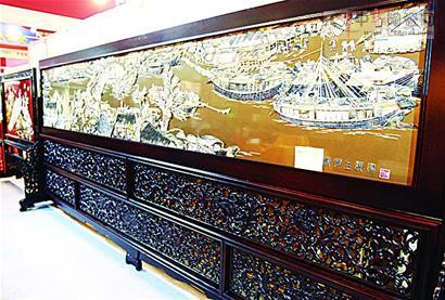 展会现场,一幅由贝壳雕刻而成的清明上河图,人物表情栩栩如生。据参展人员介绍,这幅贝雕长4.5米、高0.8米,是10位资深贝雕工艺美术师历时两年精心雕刻而成的,报价达300万元。在福建莆田象牙雕刻展区,一根长1.9米的象牙雕出满堂108佛。作品是雕刻大师用了一年的时间纯手工雕刻而成,报价68万元。展会上,享有“京城第一瓷”美誉的“董陶窑”有多位艺术家现场演示制作过程,让喜爱陶瓷艺术的观众亲身体验制瓷的乐趣。