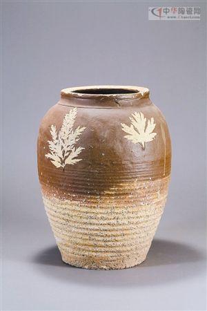 明代大同地区窑场 黑褐釉贴草叶纹缸