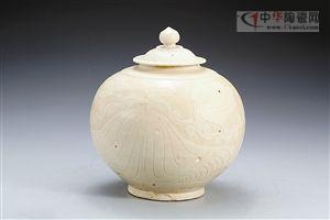 阎焰指着一个洁白细腻的圆枕介绍,这是介休窑出品的白地诗文珍珠地圆枕,已有800年历史。枕上珍珠地围簇剔刻着四朵花,还有一副楹联,“说起来有趣,这圆枕是我15年前收集到的,因工艺和笔触略有模糊,当时一直没能全部认清楚上面的字。在此次准备特展时,再捧起它,突然就把两行字清晰辨读出——‘鹤落松顶烟笼玉,莺入榴花火炼金’,多美的意境。”