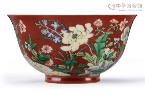 当前拍卖市场中清三代瓷器的价格已远远超过宋代官窑中的定窑和钧窑,特别是雍正,可以说是达到了登峰造极的地步。本场盈时相当难得集齐清三代代表官窑之重器,件件珍罕,包括了清.康熙年制珊瑚红地五彩九秋同庆图御制碗,康熙后期清宫彩瓷一改前期雄丽苍劲之风格,特别在吸纳西洋技艺之后,彩料细腻柔和,气息婉约清新,以致名品迭出,焕发彩瓷魅力之新姿采,下启雍干华丽彩瓷之先声。此种御制珊瑚红地五彩花卉纹碗即为其中一例典型的代表,雍乾嘉三朝皆沿袭烧造,其工艺、绘画技法甚至对珐琅彩都产生了深远的影响,为康熙时期清宫御瓷之精品佳作。