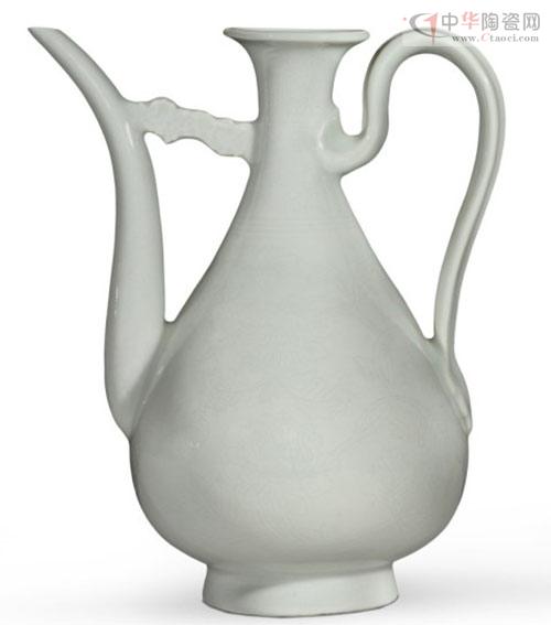明 永乐 甜白釉暗刻花卉纹把壶 高: 30公分