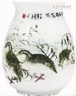 6月15日,中国工艺美术大师熊声贵携子熊晖在长沙美庐美术馆举办醴陵釉下五彩陶瓷艺术精品联展,人们在近100件作品前流连,惊叹。《鱼瓶》,独特的三方造型把人们带入到一个奇妙的异想世界;《鹌鹑芦苇》,鹌鹑每一片羽毛都清晰可见;《葡萄秋色》,一颗颗绿紫葡萄娇嫩欲滴……