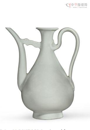 明 永乐 甜白釉暗刻花卉紋把壶 高: 30公分