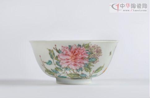 清雍正 粉彩牡丹纹碗 直俓: 11.3公分