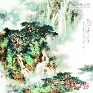 此次展出的李小聪作品《日照香炉生紫烟》、《倚石临泉图》、《翠壑飞泉》、《野亭会友》、《行旅图》、《门前自有千竿竹》等等,恰如当代陶艺界泰斗王锡良先生所评价:“潮人李小聪所作粉彩山水瓷画,深得古法精髓,意境深幽,取法聚各家之长,有宋人山川之浑雄,有清人林木之秀润,色调古雅。观其画作,仿佛步入郁然深秀、山色苍茫之境界,顿觉远离都市之尘嚣。”