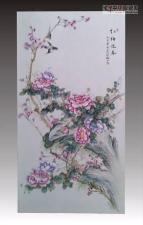 作品2尺6瓷板《花开富贵》被景德镇陶瓷馆永久馆藏;