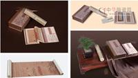 比如展商艾叶文化带来的十大名画系列,以传世名画为版本,精心设计,原大原色在丝绢、黄金宣纸等材质上高仿复制,富春山居图、虢国夫人游春图、步辇图、孔子胜迹图黄金艺术手卷、兰亭序黄金艺术手卷等,每一幅画在讲述一个故事,一段历史。