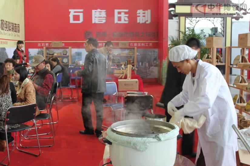 10月30日至11月3日,第2届中国(青岛)国际茶产业博览会在青岛国际会展中心1、3号馆举行。古法“石磨压茶”的亮相吸引了众多茶友。