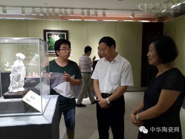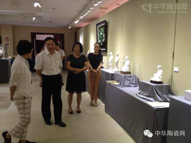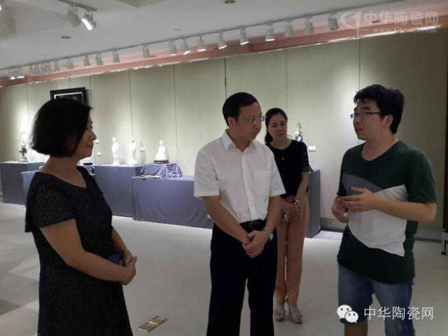 2014年8月29日,当代德化陶瓷名家作品展进行到第9天,上午广州越秀区区长——王焕清(上图中)在广州岭南会展览馆馆长——何向芹(上图右)的陪同下参观了名瓷展,中华陶瓷网及博缘陶瓷副总经理——苏世伟(上图左)向王区长详细介绍了名瓷展情况及部份参展作品。