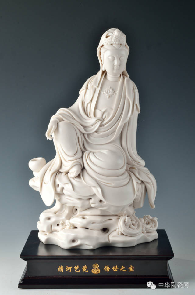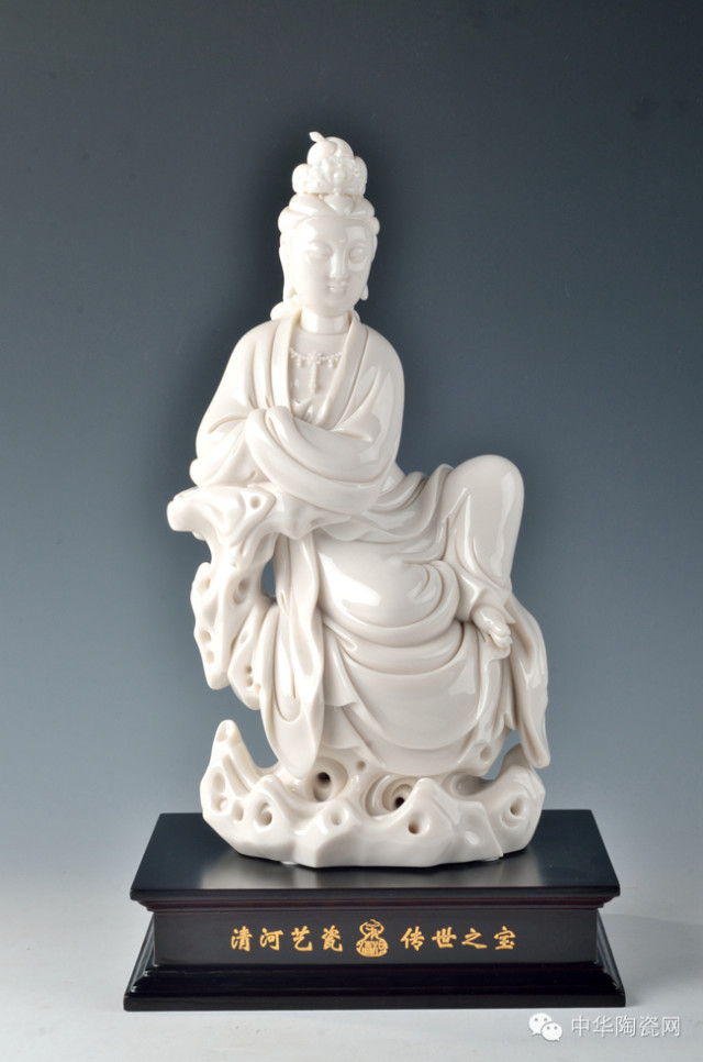 福建省工艺美术大师 苏友德作品--11英寸坐岩链珠观音,手刻签名