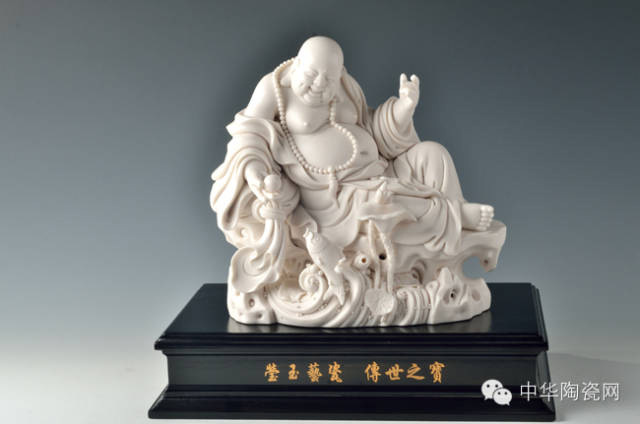 福建省工艺美术大师 苏友德作品--9英寸坐岩戏鱼弥勒,手刻签名