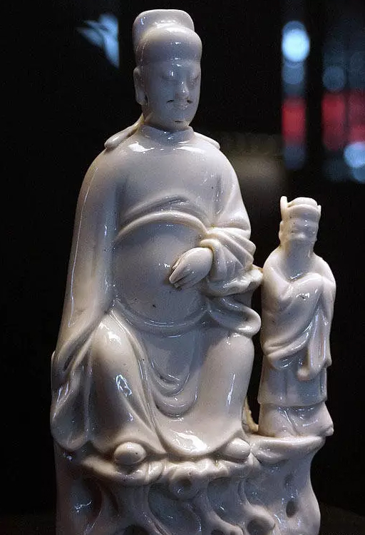 在故宫博物院收藏的35万件古陶瓷中,有700多件明清时期的德化窑瓷器,其中54件属于清宫旧藏,是故宫博物院收藏明代地方窑瓷器的一个亮点,明代制品多达200余件,其中更以何朝宗款宗教人物造像为佳。在文华殿陶瓷馆的常设展上,署有明代德化瓷塑巨匠何朝宗名款的观音坐像、鹤鹿仙人尤其令人称道,其中以传世瓷塑名作《达摩立像》最为精彩的。
