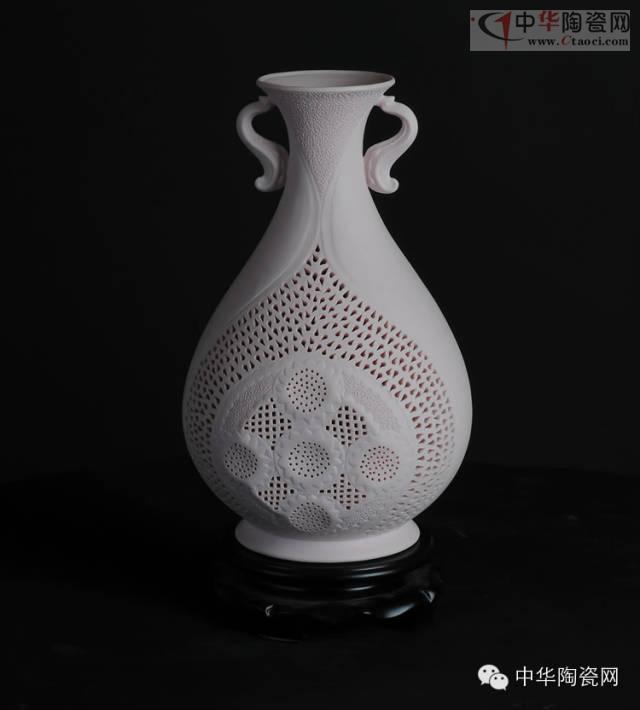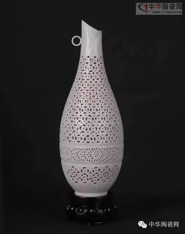 这种陶瓷叫“通花”,又称透雕、镂空,是以雕刻为主的装饰手法。德化在明清的博山薰炉、八卦香炉、笔筒等产品上就有采用。但由于制工极其精细,目前此技法传承甚少。而从小受陶瓷文化陶冶的陈明华,则在继承传统的基础上,将这一技艺发扬光大,为陶瓷文化增添一抹亮色。