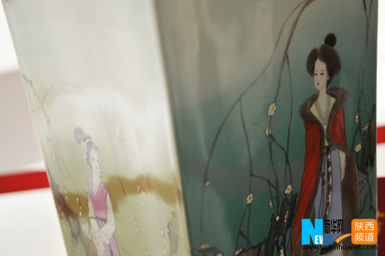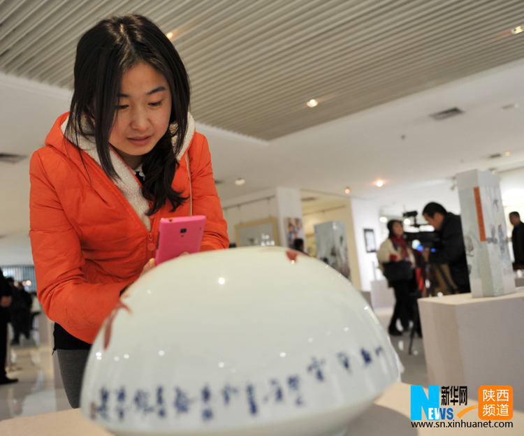 12月30日,一名游客在西安大唐西市艺术馆欣赏景德镇陶瓷艺术作品。当日,由江西景德镇美术馆主办的“传承?新丝路”陶瓷艺术品展在西安大唐西市艺术馆开幕。此次展出包括国家级非物质文化遗产(粉彩)代表性传承人傅长敏的代表作《粉彩镶器--四美图》、景德镇美术馆馆长陈军的《瓷话鄱湖》等陶瓷艺术品160件,展期7天至2015年1月5日闭幕。 新华社记者 陈昌奇摄