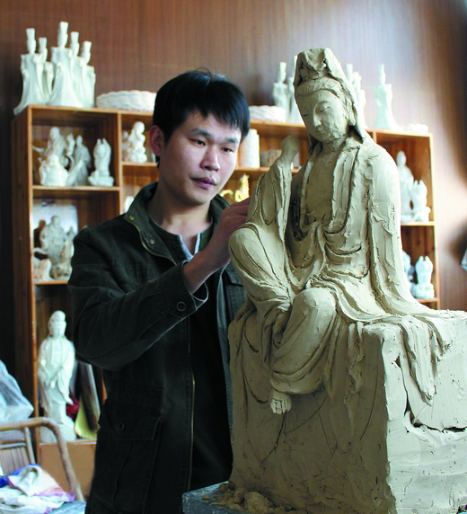 他是林吉祥,1985年出生在德化县雷峰镇朱紫村,刚刚步入而立之年的他结缘瓷雕却已有15年。