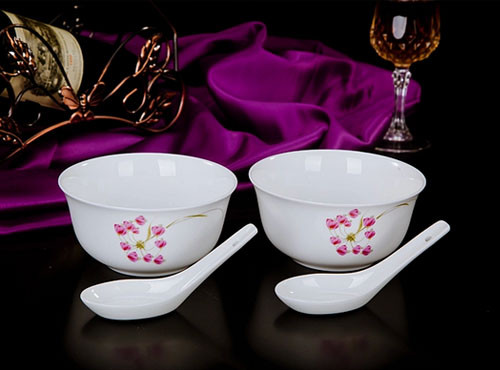 景德镇高档优质骨瓷餐具,无铅环保健康瓷。易清洗,不易沾手。适用于冰箱,微波炉,洗碗机。这个4件套,包含2个碗和2个勺子,天猫商家特价8.9元包邮,价格非常划算,适合两口子的小家庭使用和购买,喜欢的快收了吧。