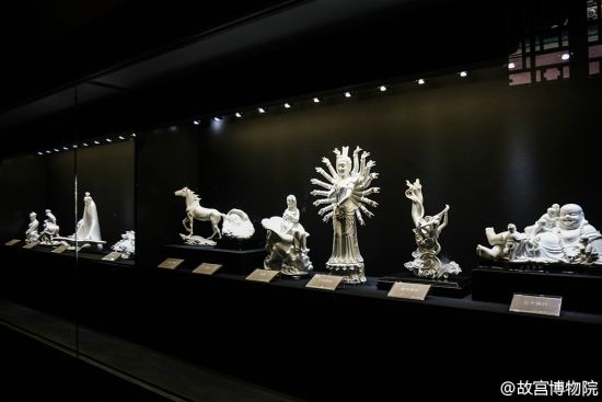 故宫博物院现收藏德化窑瓷器700多件,其中明代德化窑瓷器200多件,堪称故宫博物院收藏明代地方窑瓷器的一个亮点。这次展出的122件德化窑陶瓷,包括20件故宫博物院藏明、清德化窑大师珍品和102件现代德化窑精品佳作。展品以被誉为“中国白”的白瓷为主,另有青花、红釉瓷等;造型丰富多样,涵盖雕塑、瓶、盘等;题材广泛,涉及人物、山水、花鸟、走兽等,代表了从古到今德化窑陶瓷艺术的最高成就,丰富性、艺术性和风格多样性均令人叹为观止。