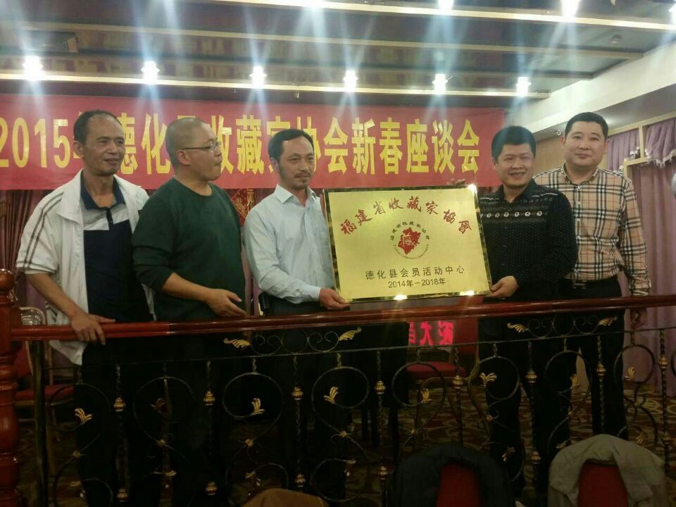 3月18日,全省各地收藏家协会会长办公会议及2015年德化县收藏家协会新春座谈会在德化县宁昌大酒店举行。会上,福建省收藏家协会会长周野授牌成立德化县会员活动中心,县收藏家协会座谈会上会长陈明良发表讲话,省会会长周野先生新会指导工作,座谈指出共同把德化瓷推向一个新高峰。