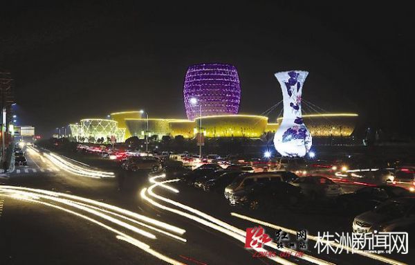 (记者李逸峰 通讯员张斌 廖蔚佳)3月21日晚,华灯璀璨,醴陵·世界陶瓷艺术城流光溢彩,一座高20米的巨型釉下五彩巴拿马瓶气模具——“世界和瓶”巍然矗立,与陶瓷艺术城的异形建筑群交相辉映。