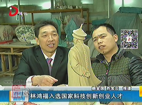 【同期声:恒忆陶瓷艺术股份有限公司董事长:林鸿福:我们结合的点,就是在全国各地开发的加盟商品牌商,我们就以当地地方的特色文化,就是地域的文化,用德化的传统大师包括德化以外的一些设计大师,还有创新的一些大师结合起来,用德化传统文化就是德化传统的雕塑技艺…做成服务于当地的消费群体的生活习惯、消费习惯以及当地人观赏欣赏习惯的(作品)。】