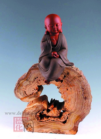 古朴的紫砂人物,形神毕现,配以精心选择、造型合拍的古木底座,每一件艺术品都自然天成,云淡风轻中暗藏千言万语,叫人反复揣摩品味,愈显真淳。