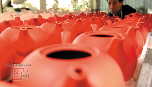 在三月份湖南醴陵举办的中国陶瓷艺术大展上,我县参展的一款火山石养身壶一度卖到断货。“这是我们公司经过一年多时间研发出来的火山石陶瓷产品,不仅能改善水质,还能在烧水过程中释放人体所需的微量元素。”德化三人行陶瓷文化有限公司营销总监匡小兰介绍,没想到产品会卖到脱销,公司不得不再从德化补发一批。