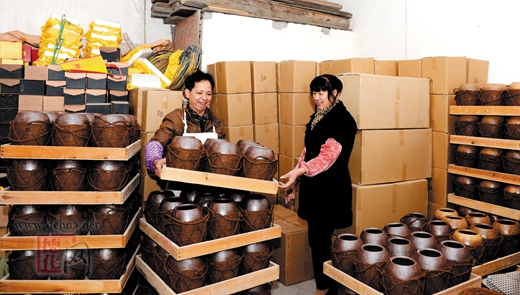 “这种罐最大的特点是内部不上釉,不会渗透,可以藏茶叶或酒等,历久弥香。”公司负责人涂瑞润介绍,采用传统手拉坯、手工麻绳编织技术与现代化陶瓷制作工艺相结合生产的陶罐,不仅生态环保,而且具有独特的韵味,一上市便深受顾客欢迎。据介绍,该公司的茶叶罐品种已达几十种,酒罐除了本地红酒罐外,还与金门酒厂合作,生产金门高梁酒酒罐,产品大多销往日本、台湾和东南亚等地。