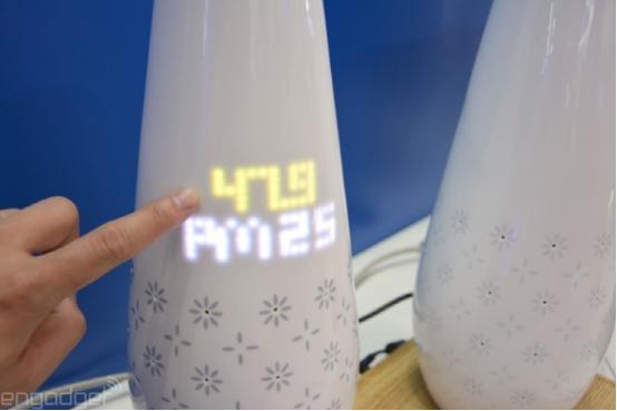 另外一款智能花瓶,在瓶体内添加了空气质量传感器,可以显示当前空间的颗粒物水平、二氧化硫和二氧化碳含量,已经温湿度等信息。目前这款智能花瓶的价格ODM公司还没有对外公布,不过考虑到前面水杯的价格以及内置的各种复杂传感器,相信这款体积更大的智能花瓶绝对同样不会便宜。