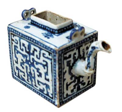 《收藏家》1994年第6期,刊登了杨静荣先生的一篇文章,题为"《说陶》一书的几点失误".作者在对书中宋代官窑(兽犬耳方壶注疏时写道:"陶瓷受自身材料的限制,如欲设计方形造型,在成形上有一定难度。宋、元、明时期,瓷器中没有方形的,直到清康熙时,陶瓷工艺逐渐成熟,方器才开始流行。故此方壶只能是清代产品。"杨先生明确地指出方器出现于清代。纵观我国陶瓷制作工艺的历史,大体经历了手制、手制与慢轮修正结合、轮制三个发展过程。三种制作工艺是在不同历史时期出现的,然而,三种不同制作工艺是不可截然分割开的。新的制作工艺的出现,并不意味着旧工艺的消亡,而是使制作工艺更臻完美、制作效率更高。而旧的制作工作仍然存在,作为新工艺的补充。即使是当代,瓷器成型工艺已进入机械化、自动化,而手制作为机械化不及之处的补充,它仍然存在。