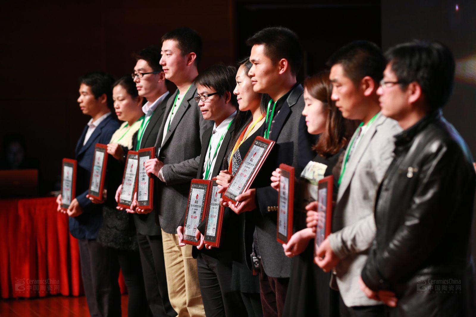 东鹏瓷砖代表(左三)上台领“瓷片十大品牌”牌匾