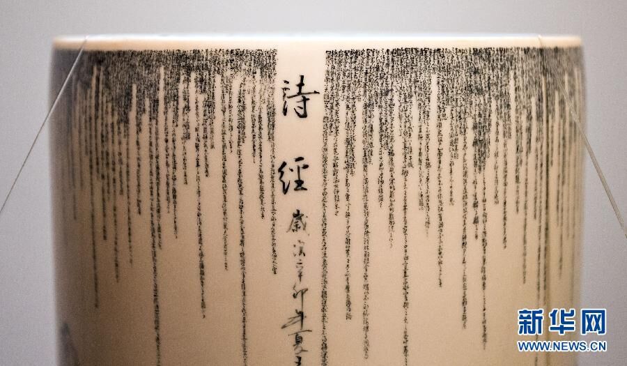 这是4月28日在加拿大多伦多中华文化中心拍摄的一件“陶瓷微书”作品。作为2015-2016中国与加拿大文化交流年的一项内容,中国国家级非物质文化遗产——“陶瓷微书”作品展于4月24日至5月1日在加拿大多伦多举行,展览展出了项目传承人王芝文的数十件作品。“陶瓷微书”将中国书法艺术与陶瓷艺术相结合,在不用任何放大设备的情况下,运用难度极高的微小文字在瓷器上创作。新华社发(邹峥摄)