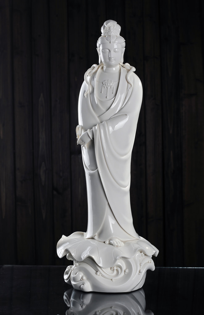 林建平出生于有“三大古瓷都”、中国瓷都·德化之称的福建德化,自幼酷爱陶瓷雕塑,二十载朴素执着学习,以观音、弥勒和古代神像人物爲主,其作品造型务实、严谨、质感强烈、并恰当地运用了线条在瓷雕中的表现力,结合德化陶瓷“白”、“润”、“饱满”等特性更好的加以展示,从立意到表现手段同时继承传统制作工艺基础上敢于创新,把德化古代的制瓷工艺与自我淨心感悟的思想有机结合,创造出佛像的庄严、肃穆、慈悲、大爱,展现了一种以传统工艺中走出的新的审美理想。
