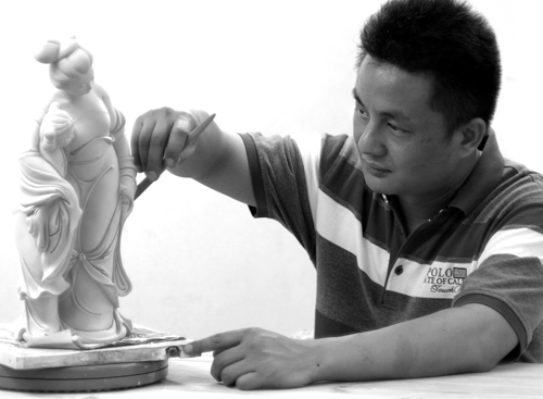 许瑞卿,生于1975年。许氏瓷塑第六代传人、高级工艺美术师、福建省工艺美术名人、福建省陶瓷艺术大师。自幼师从许兴泰(中国工艺美术大师)学艺。从艺二十余载,在继承德化历代瓷塑尤其家族传统技艺基础上,致力于材质创新与艺术创新,在瓷圣何朝宗的写意慨括与【山湖祖】的精雕细琢之间找到和谐的平衡点,创造出独树一帜的【许氏瓷塑】。作品注重题材和形式的创新,或朴拙古韵、或奔放飘逸、或雍容华贵、或情趣生动,多件陶瓷艺作品在国家级展评会上获奖,被省级以上文博单位永久收藏。