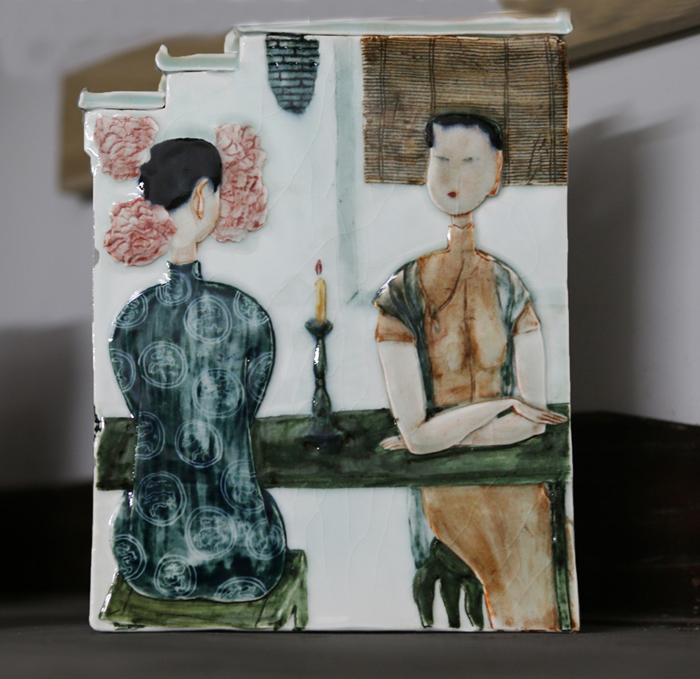 景德镇陶瓷艺术家梁永红的釉下五彩综合装饰陶瓷艺术品,将亮相第三届济南艺术品博览会,成为一大看点。她笔下的陶瓷作品,以江南建筑为陶瓷造型,营造了浓郁的环境气息,工笔淡彩地将一袭旗袍的江南窈窕淑女融入瓷瓶釉色之中,诉说着江南水乡烟雨蒙蒙的前世今生和女子温婉柔顺、娴静端庄的诗情画意。画面中既让人欣赏到了瓷器与画技的精髓之美,也让人隐约地感受到了一种恬静的淡淡乡愁。