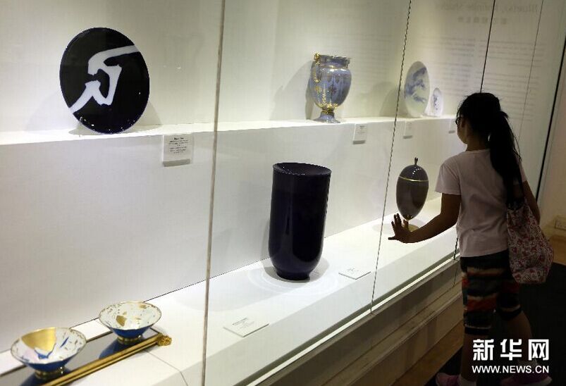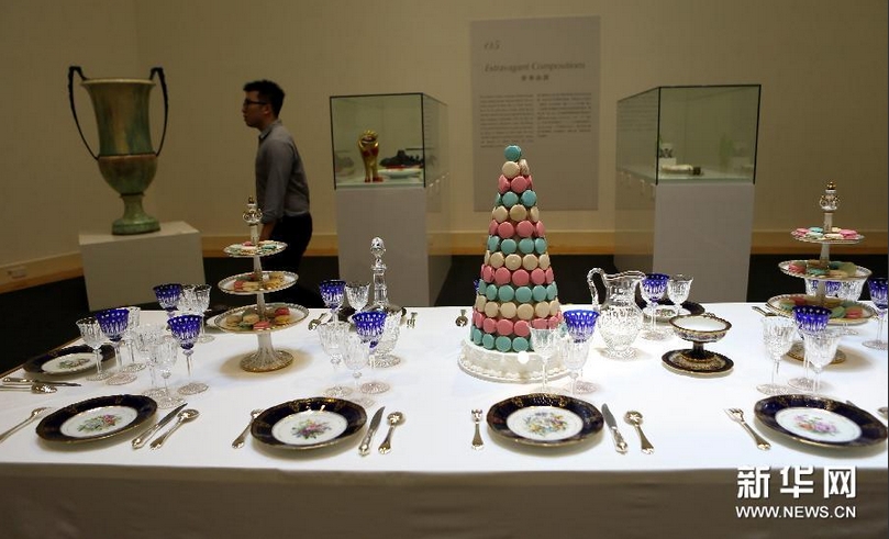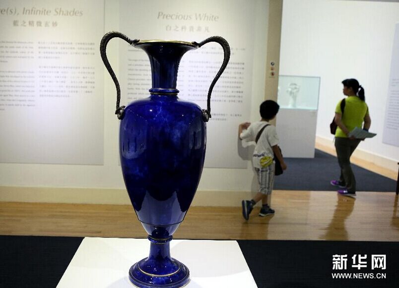 这是香港大学美术博物馆举行的“帝王的瓷器:塞夫尔国家陶瓷制造局特展”上展出的部分精美瓷器(7月14日摄)。