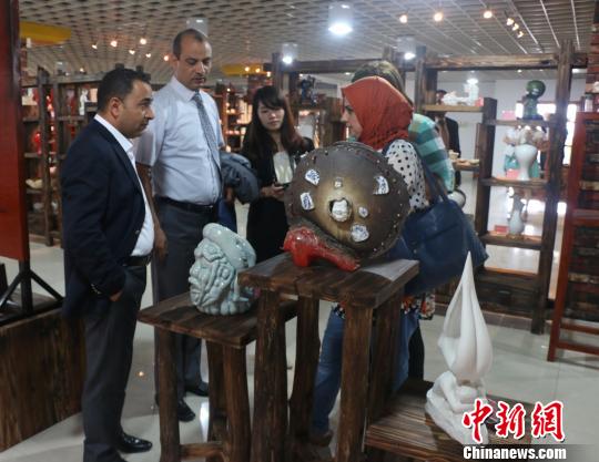 图为阿拉伯国家官员参观泉州工艺美术学院师生作品展厅。 林嫦娥 摄